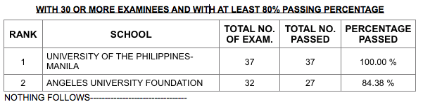 The top performing schools in the February 2016 Physical Therapist Licensure Examination as per Commission Resolution No. 2010-547 series of 2010: